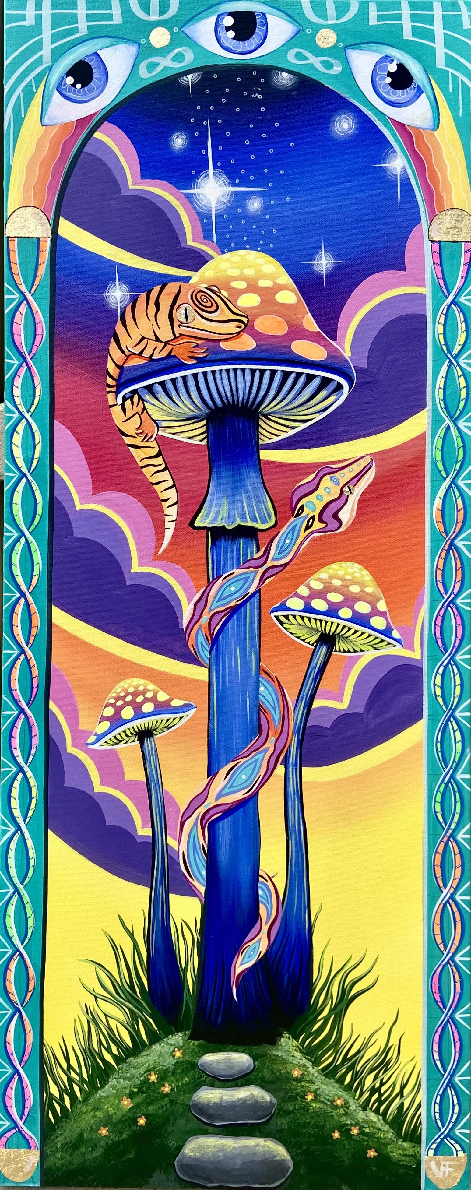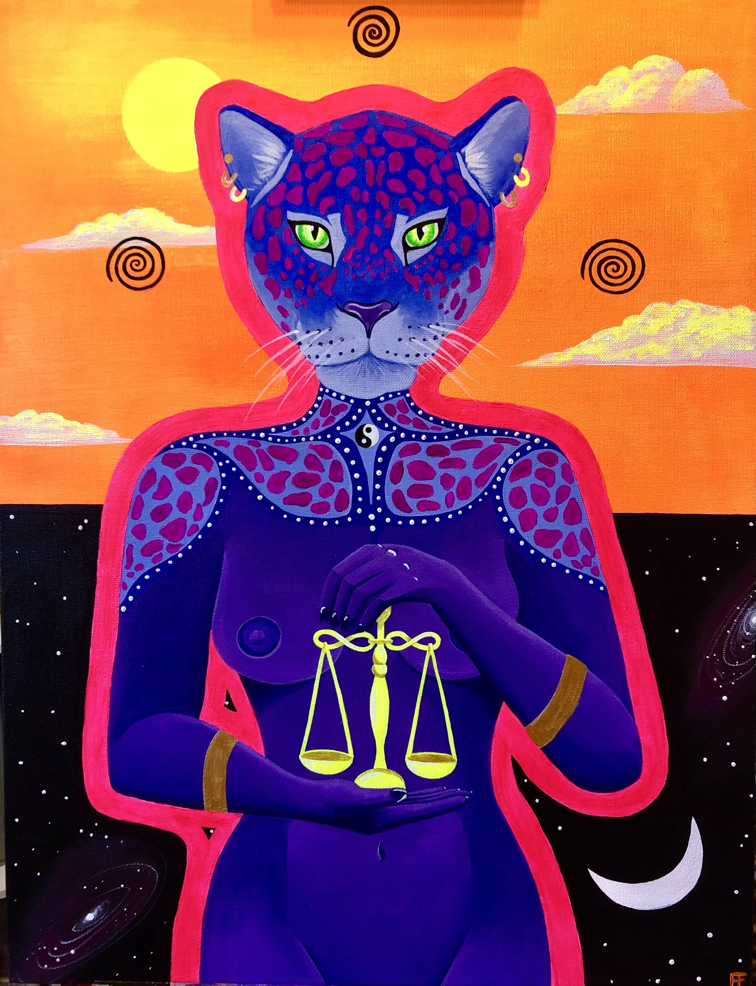 Image 1: Jaguar Medicine // 2021 // Acrylic with UV pigment on canvas // 18"x24” // Available