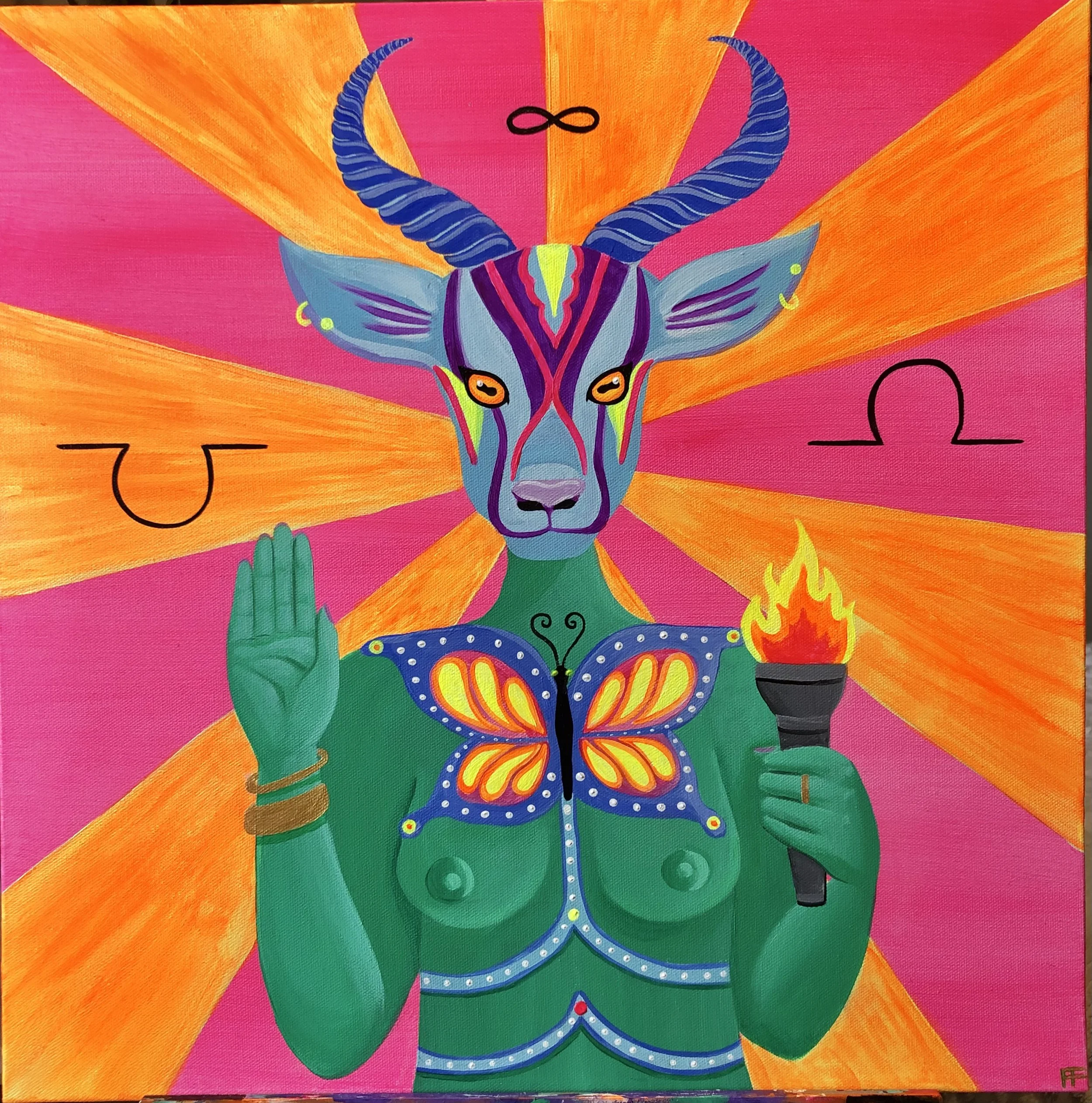 Image 2: Antelope Medicine // 2021 // Acrylic with UV pigment on canvas // 24”x24” // Available